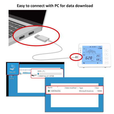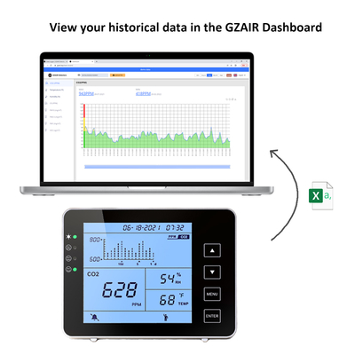 โมเนอร์ CO2 จอ LCD CO2 / อุณหภูมิ / ความชื้นบันทึกข้อมูล เครื่องตรวจจับก๊าซอากาศภายในห้อง สําหรับโรงเรียนบ้าน โรงแรมออกกําลังกายสําหรับเซ็นเซอร์สวิตเซอร์แลนด์ 5