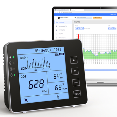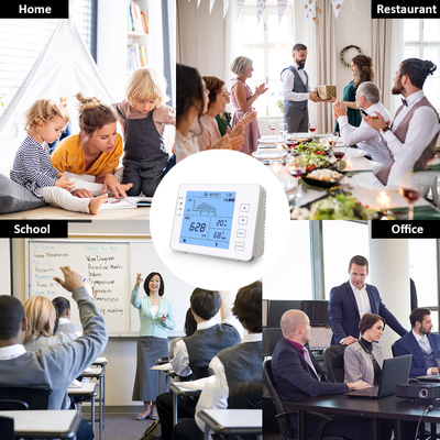 โมเนอร์ CO2 จอ LCD CO2 / อุณหภูมิ / ความชื้นบันทึกข้อมูล เครื่องตรวจจับก๊าซอากาศภายในห้อง สําหรับโรงเรียนบ้าน โรงแรมออกกําลังกายสําหรับเซ็นเซอร์สวิตเซอร์แลนด์