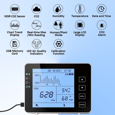 โมเนอร์ CO2 จอ LCD CO2 / อุณหภูมิ / ความชื้นบันทึกข้อมูล เครื่องตรวจจับก๊าซอากาศภายในห้อง สําหรับโรงเรียนบ้าน โรงแรมออกกําลังกายสําหรับเซ็นเซอร์สวิตเซอร์แลนด์ 6