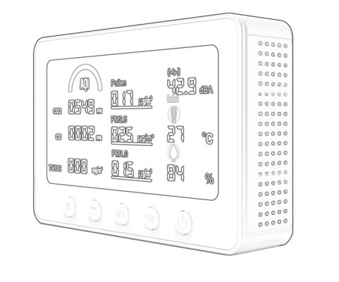 | วัตถุประสงค์การใช้งาน | ตรวจจับและตรวจสอบแบบเรียลไทม์แบบดิจิทัล: CO2, CO, ละอองเกสร, PM1.0, PM2.5, TVOC, ความชื้น, AQI, เสียงรบกวน |