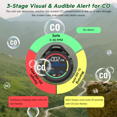 เครื่องตรวจจับคาร์บอนมอนอกไซด์ (CO) แบบพกพา PT08, เซ็นเซอร์ไฟฟ้าเคมี พร้อมสัญญาณเตือนด้วยเสียงและแสง, 300-1100hPa สำหรับบ้าน/โรงรถ/รถ RV 2
