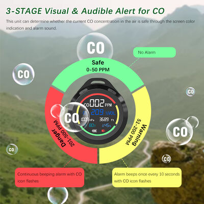 [การออกแบบ 6-in-1 และพกพาได้] เครื่องตรวจจับคาร์บอนมอนอกไซด์ RV ตรวจจับ co, o2, ความดันบรรยากาศ, ระดับความสูง, อุณหภูมิ, ความชื้นแบบเรียลไทม์ มีขนาดเล็ก 2.8 * 1.3 นิ้ว สามารถใส่ในกระเป๋าได้ง่าย นอกจากนี้ยังมีสายคล้องคอ 7.8 นิ้ว สามารถแขวนและตั้งได้